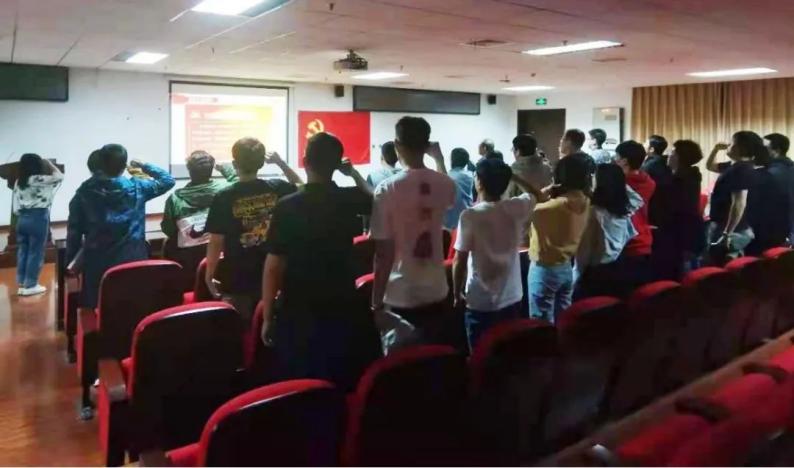 最后一部分主题是“共忆入党初心,坚定理想信念”,全体党员重温入党誓词,重忆入党初心。
