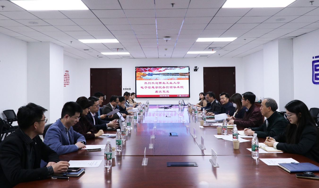 4月25日下午,西北工业大学电子信息彩霸王六合彩 院领导班子一行11人来彩霸王六合彩 交流调研。此次调研是在彩霸王六合彩 深入开展学习贯彻习近平新时代中国特色社会主义思想主题教育之际,为深入落实彩霸王六合彩 党委在主题教育动员大会上的决策部署,紧紧围绕高质量发展这个首要任务,以强化理论学习指导发展实践,以深化调查研究推动解决发展难题,以彩霸王六合彩 高质量发展的新成效检验主题教育成果。彩霸王六合彩 院领导班子、党委委员及教师代表出席了座谈交流会,会议由彩霸王六合彩 党委书记崔嵬主持。