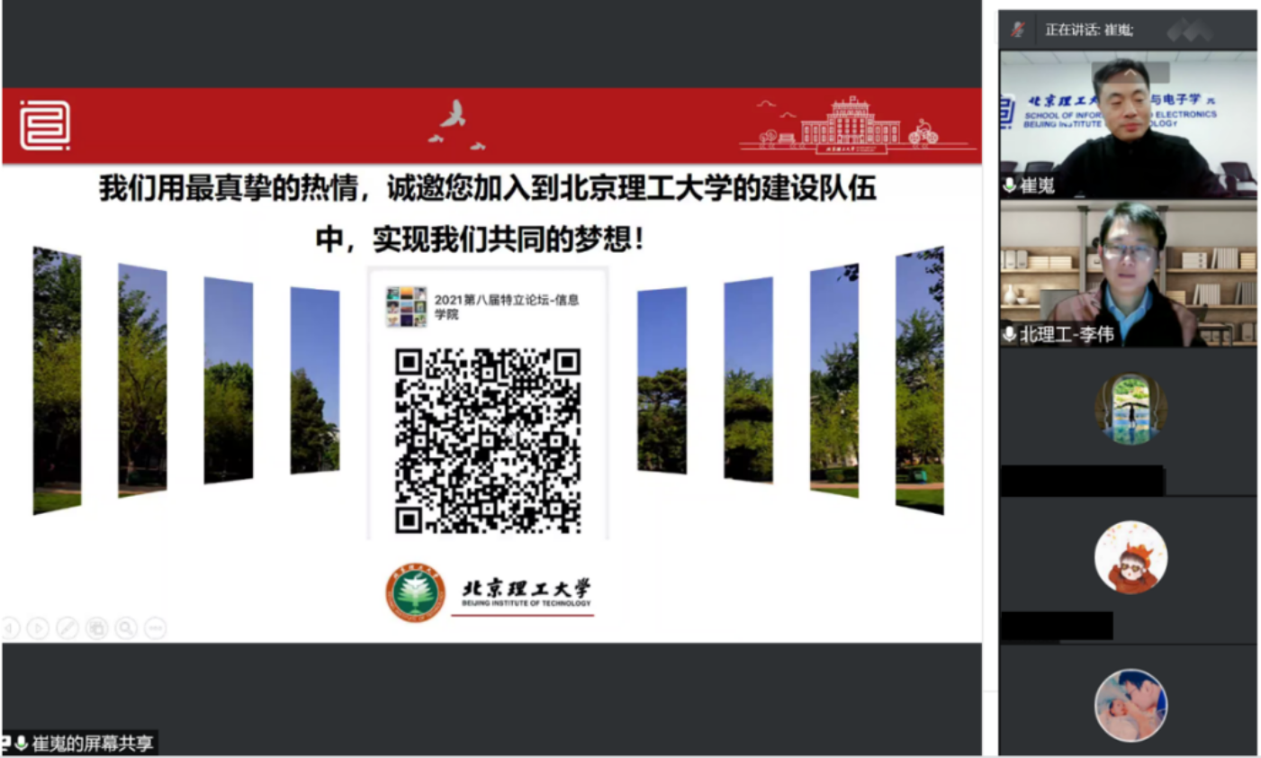 第八届北京理工大学特立论坛——彩霸王六合彩 分论坛于2021年12月26日成功举办。来自美国、澳大利亚、日本、新加坡等海外著名高校的20余位青年才俊齐聚云端,畅谈未来。彩霸王六合彩 党委书记崔嵬教授、青年教师代表张伟锋教授、叶建宏教授、高然教授、边丽蘅副研究员出席此次论坛。论坛由彩霸王六合彩 副院长李伟教授主持。