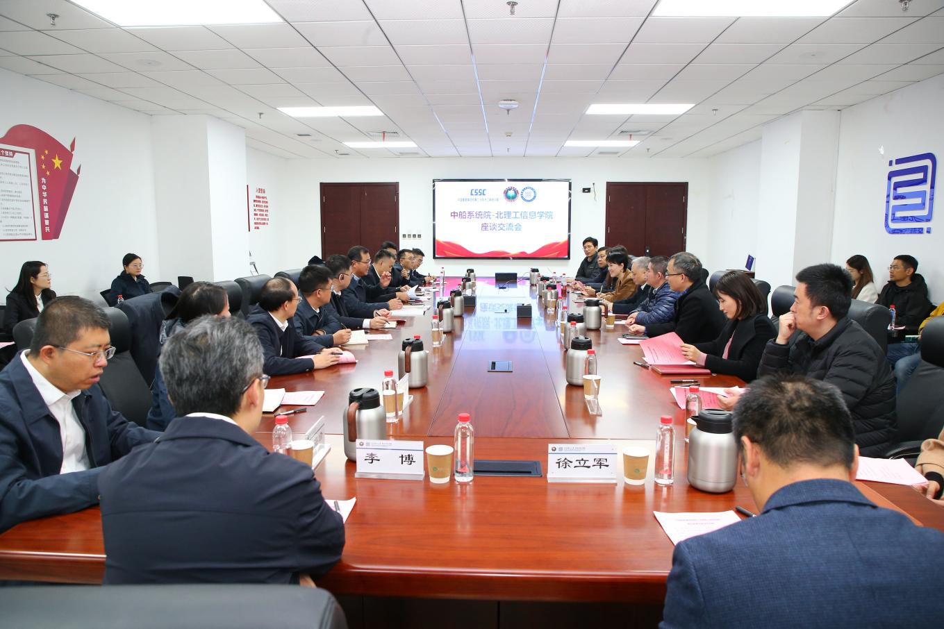 10月24号下午,中国船舶集团有限公司系统工程研究院党委书记王东军带队来彩霸王六合彩 参观交流,推动进一步深入合作。北京理工大学党委常委、副校长魏一鸣参加交流座谈会。会议由彩霸王六合彩 党委书记杨静主持。
