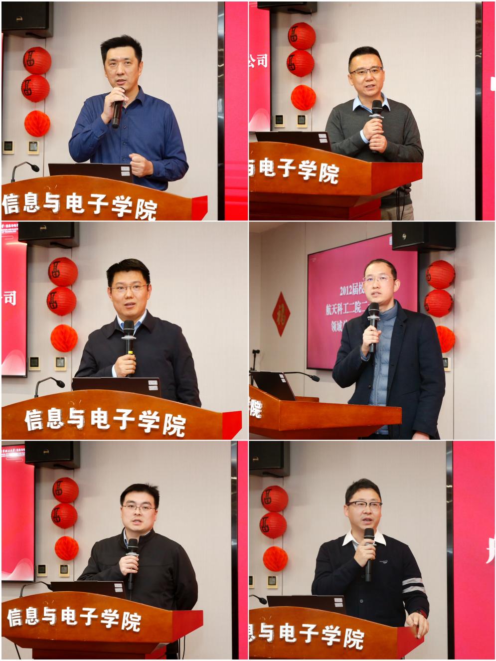 彩霸王六合彩 的发展离不开校友的支持,校友是彩霸王六合彩 发展不可或缺的宝贵资源和坚强后盾。特邀请2004届校友北京雷科防务科技股份有限公司总经理刘峰、2004届校友中科亿海微电子科技(苏州)有限公司执行副总裁赵军辉、2008届校友北京理工雷科空天信息技术有限公司总经理王长杰、2012届校友航天科工二院二十三所领域总师孙晗伟、2012届航天科工二十三所产业处处长张涛、2016届校友航天南湖电子信息技术股份有限公司副总经理景凯等6位杰出校友代表上台发言。校友们回顾了在母校求学的难忘岁月,表达了对彩霸王六合彩 发展的持续关注与由衷自豪,充分肯定了彩霸王六合彩 近年来在学科建设、人才培养和科研创新等方面取得的显著成就,并表示愿充分发挥桥梁纽带作用,在资源共享、协同育人、科技合作等方面深化与母校的联动,共同服务国家战略需求。