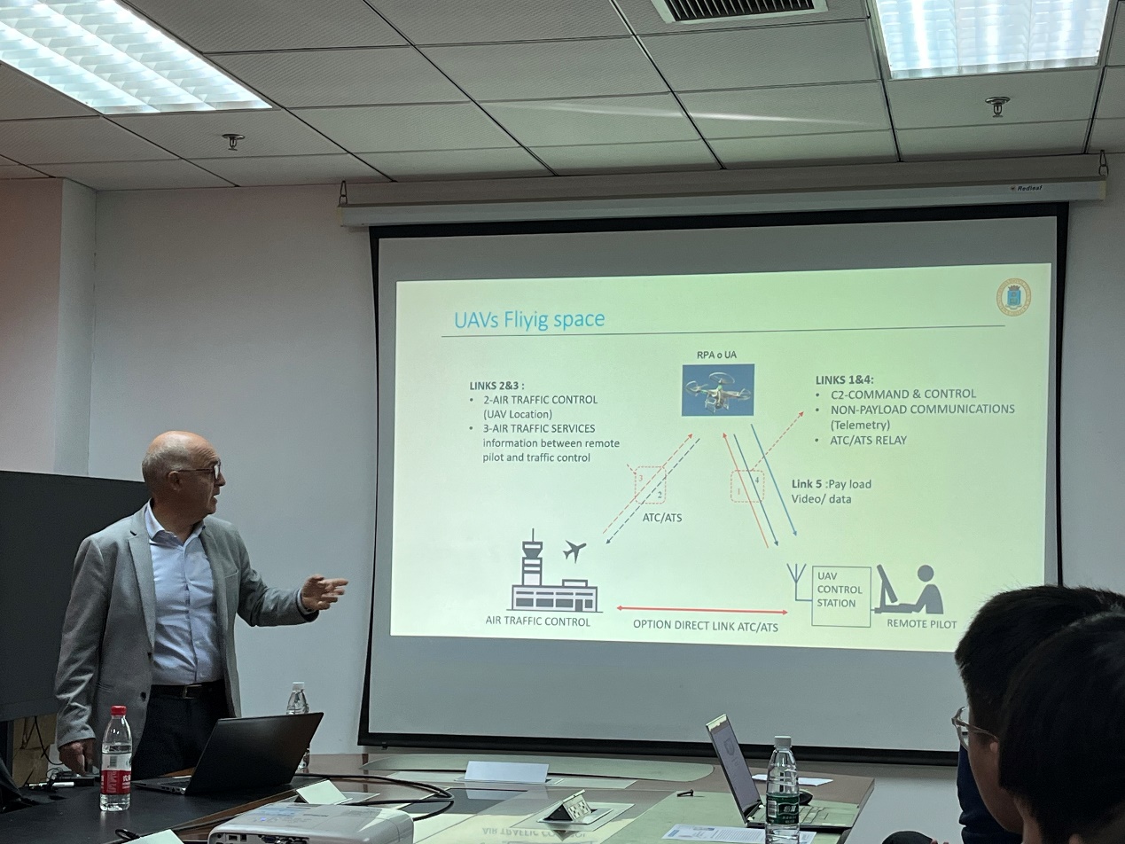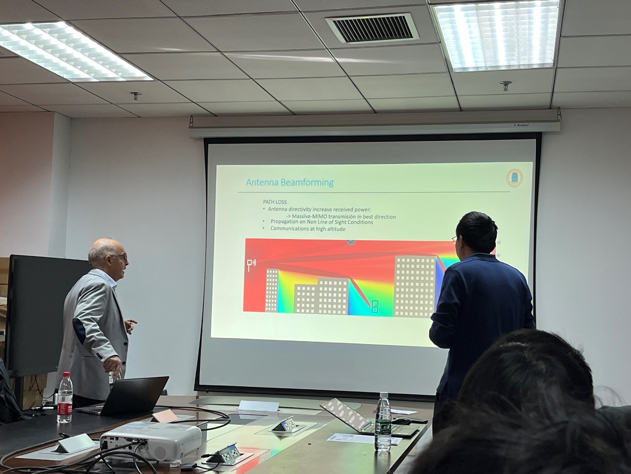 2023年11月10日上午,彩霸王六合彩 联合研究生院邀请西班牙马德里理工大学Cesar Briso教授到我校进行线下学术交流。Cesar Briso教授应邀做了题为“A Connected Sky: 6G communications for UAVs”的学术报告,彩霸王六合彩 张焱副教授主持了该报告,彩霸王六合彩 多名教师与研究生一起聆听了该报告。