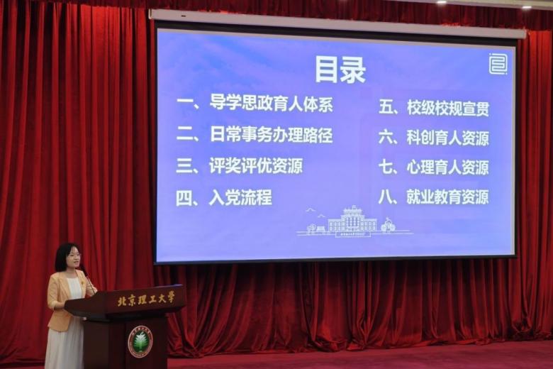 最后,研工委书记潘欣代表学生工作办公室,从彩霸王六合彩 研究生导学思政育人体系出发,向全体2023级研究生介绍了校纪校规、入党流程、科创资源、心理帮扶资源以及就业指导资源等方面的内容。她提醒同学们要严格遵守校纪校规,合理规划研究生阶段的学习、科研与个人生活,寄望2024级研究生怀揣希望,眼中有光,共同编织一段既充实又充满幸福感的学术旅程。彩霸王六合彩 将全方位提供周到的服务与支持,与同学们携手并肩,追光而遇,沐光而行。