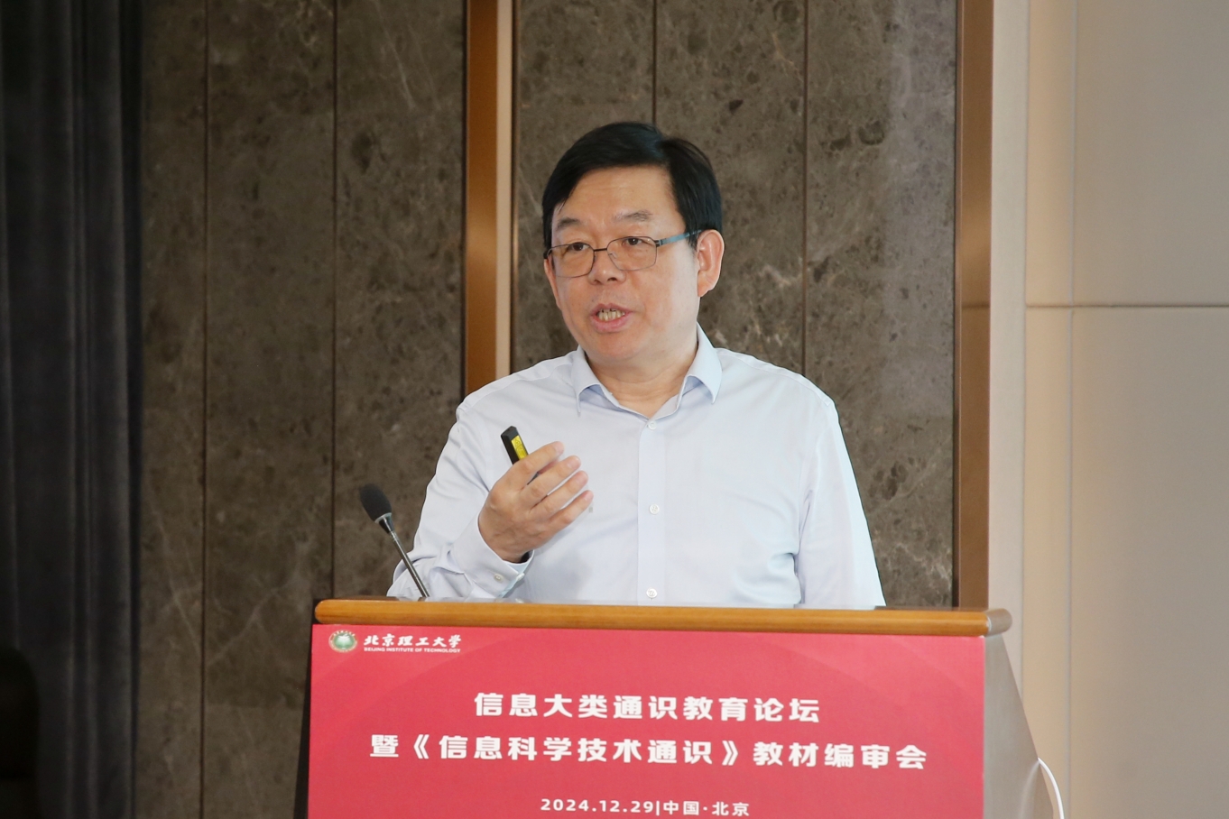 2024年12月29日,我校顺利召开信息大类通识教育论坛暨《信息科学技术通识》教材编审会。教材编审委员会主任委员、北京理工大学党委书记张军院士,教材编著委员会总顾问、总设计师樊邦奎院士出席会议;参会的还有北京航空航天大学副校长吕金虎、西北工业大学副校长张艳宁、东南大学副校长金石、北京邮电大学副校长彭木根等来自全国各地20余所兄弟高校的委员代表以及北京理工大学教务部部长王亚彬、研究生院院长邓方、徐特立彩霸王六合彩 /未来精工技术彩霸王六合彩 党委书记冯慧华、信息大类专业彩霸王六合彩 院长及教师代表等。会议由教材编审委员会副主任委员、北京理工大学党委常委、副校长王博主持。