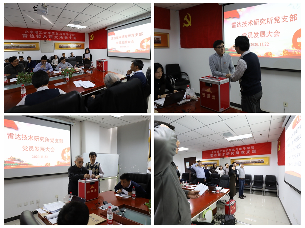 11月22日,彩霸王六合彩 雷达技术研究所党支部在信息科学实验楼1107会议室组织召开支部党员大会。支部党员毛二可院士、彩霸王六合彩 党委书记薛正辉、支部全体党员同志参加了会议。会议由支部书记杨小鹏主持,会议主要内容包括讨论党员发展、理论学习、新入职党员教师交流、提升支部党建工作质量研讨四个议题。